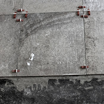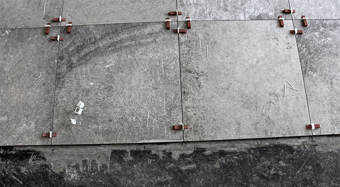 – Fliser i så store formater som dem i udstillingens indgangsparti tager tid og kræver omhu at få lagt rigtigt. Det gælder både om at vælge materialer, som har de rette egenskaber, men også om at være omhyggelig i sit håndværk. Kvaliteten skal altid være prima, understreger Enzo Iacopino.