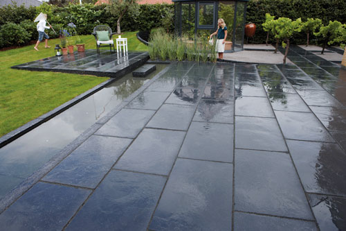 Som alle typer af skifer, så kan Monsoon Black også på sigt få et lysere og mere gråligt skær. Hvis det er løsningen for dig, så skal du bare stoppe med at læse her. Hvis du derimod gerne vil fortsætte med at have en dybsort og stilren terrasse, så anbefaler vi, at du dybdeimprægnerer din skifer med en særlig skiferolie. Der findes flere på markedet, som først trænger til genopfriskning efter 5-10 år.