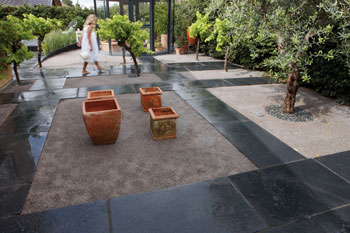 Monsoon Black skifer leveres på blandende paller med fire forskellige størrelser specielt til vort OPUS-mønster – eller til det mønster, du selv ønsker at designe. Den fås også som trappesten, således at din haveløsning kan blive helt perfekt.