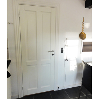 Dannebrosdørene findes i flere forskellige størrelser. Fyldningsdøren er Fremstillet i massiv hårdtræ, primet så olieudtræk undgåes malet 3 gange med farven ral 9010. En skøn dør der tilføjer den gamle og hyggelige charme i dit hjem.