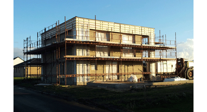 Pladerne på huset er monteret af en enkelt mand fra et tømrerfirma, og også monteringstid og bearbejdning af pladerne har i flg. bygningskonstruktøren levet helt op til forventningerne: