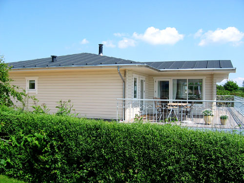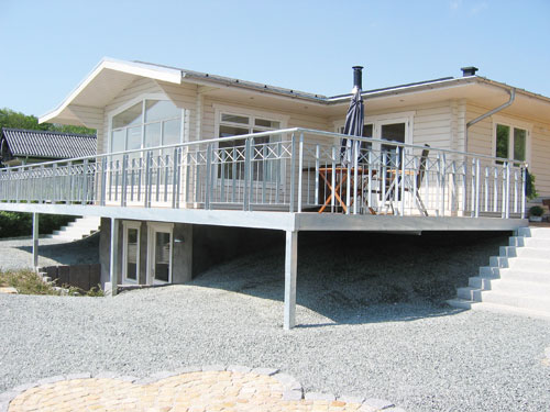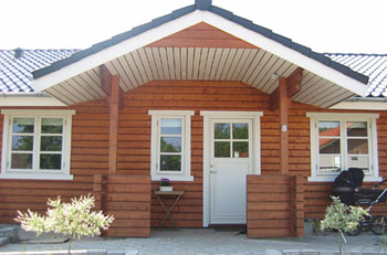Et træhus fra Christian Panbo har som standard et stort udhæng, der beskytter ydervæggene rigtig godt.
