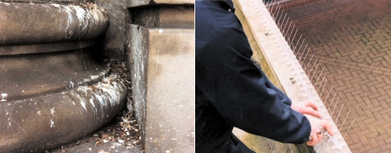 Duernes ekskrementer, opblandet med regnvand og redemateriale, ætser og nedbryder bygningsmaterialer og kan derfor give omfattende bygningsskader.