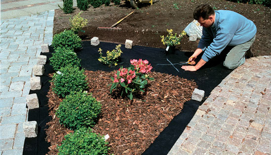 Det er vigtigt, at du bruger en rigtig ukrudtsdug. Der findes mange forskellige Fibertex-duge. Vi kender alle de grå Fibertex-duge, som kan lægges under indkørslen for at undgå hjulspor, men i havebede er det vigtig, at du bruger den sorte Fibertex-dug – den såkaldte ukrudtsdug.