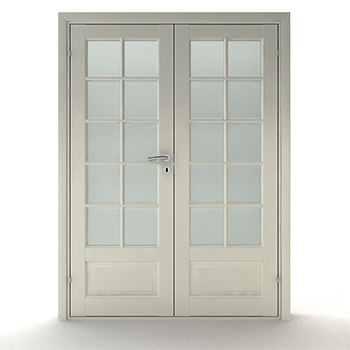 Fyldning nederst på dørene og 10 glas pr. dør