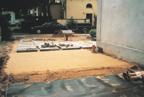 Stabilgruset udlægges, og herefter afrettes og stampes dette.