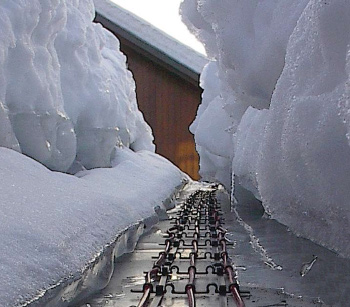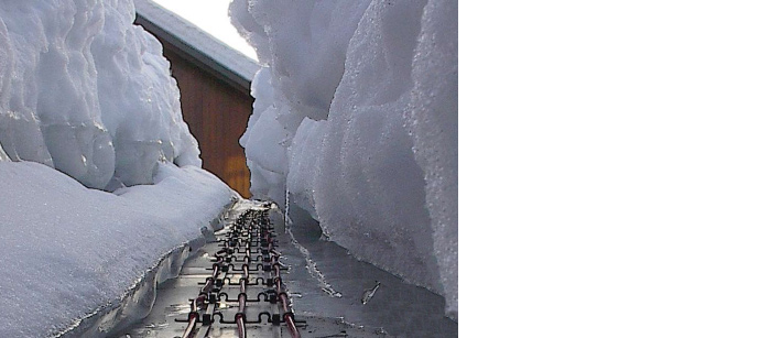 For at undgå dette eller det manuelle arbejde med at fjerne isen, installeres varmekabler i alle afløb såsom skotrender, tagrender og faldrør.