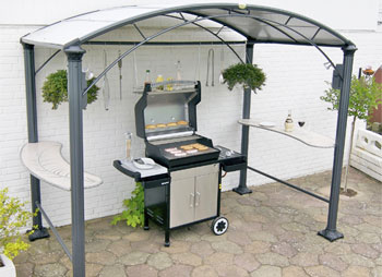Grill-pavillonen fra Nielsen Outdoor Solution. En funktionel løsning til alle, der vil have grillen eller hele udendørs-køkkenet under tag. Kan også bruges til en overdækket hyggekrog eller som rygepavillon.