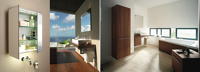 Duravit’s kreative ideer ved design af møbler sikrer at du selv på lille plads kan lave opbevaringsplads eller afsætningsplads til dit tilbehør. For eksempel er 2nd floor hylderne med beslag i krom ideelle til toilettasker, håndklæder eller andet småt tilbehør.