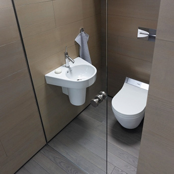 Gæstetoiletter kan også blive en wellnessoplevelse. På grund af den ofte begrænsede plads bliver mange gæstetoiletter og gæstebadeværelser svære at indrette og resultatet kan blive forkrampet og sparsomt møbleret. Duravit tilbyder de ultimative bedste løsninger til disse indretninger med vores fleksible og designorienterede produkter. Afhængig af plads, budget og personlige præferencer, kan vi omdanne selv det mindste badeværelse til et komfortabelt rum, som det nok ikke kun er gæsterne som vil besøge fremover.