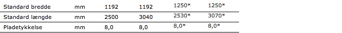 (*= Nyttemål: 8,0x1220x2500 mm& 8,0x1220x3040 mm)