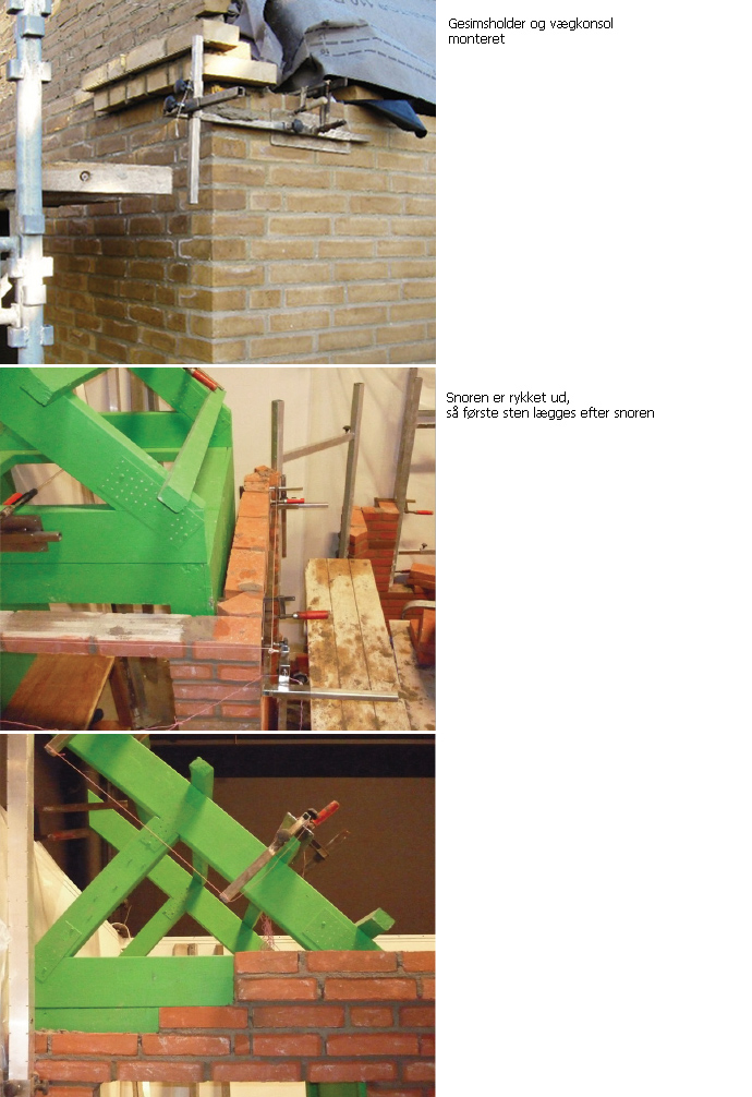 Gesimssnorholder fremstillet i rustfri materialer bruges til opmuring af gesims, monteres med pudshage eller skruetvinger på f.eks., murværk og kan derefter forskyde snoren i 2 retninger.