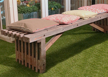 Skønne rustikke bænke i trætraller har mange funktioner i haven og kan bruges til alt fra det lille hvil under havearbejdet til middage i det fri, hvor der skal være plads til familiens mange gæster. Her kan middagsgæsterne nyde et glas kølig hvidvin, mens salaten snittes og blandes med det hjemme dyrkede basilikum og oregano.