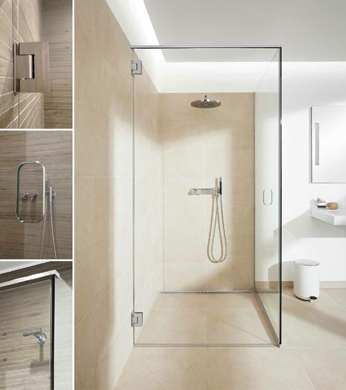 Brusedøren indrammer brusenichen og er udført i samme kompromisløse materialer som brusevæg, topstang og gulvafløb. GlassLine brusedøre er tilpasset brusevæggen i højde og bredde. Alle materialer er nøje udvalgt for at understrege det elegante og tidsløse design, hvilket giver en flot finish og et lækkert helhedsindtryk af badeværelset.
