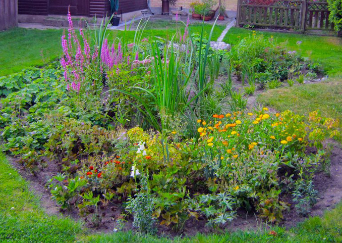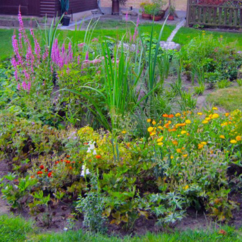 Plant planter, der blomstrer på forskellige tidspunkter, og plant også gerne nogle stedsegrønne planter og planter med smukke vinterstandere, så regnbedet er kønt at kigge på hele året.