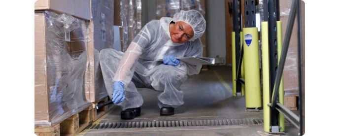 Ved varemodtagelsen kontrolleres for ekskrementer på pallerne og bid i emballagen for at sikre, at skadedyr ikke bliver bragt ind med varerne.