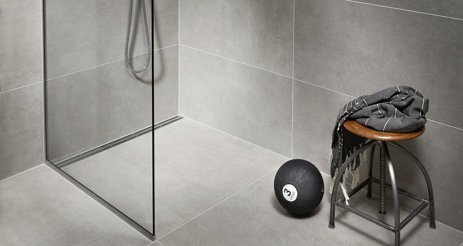 – I GlassLine er gulvafløb og brusevæg bygget sammen i en ramme. Rammen har et indbygget fald på 2 procent ned mod afløbet, så det er let at holde styr på faldet. Du monterer rammen med skruer i væggen og støber gulvet inde i rammen. Derved opnår du et fald, som lever op til gældende krav. Når gulvet er tørt, tætnes løsningen yderligere med vådrumsmembran, inden fliserne lægges, siger Lasse Lyck og fortsætter: