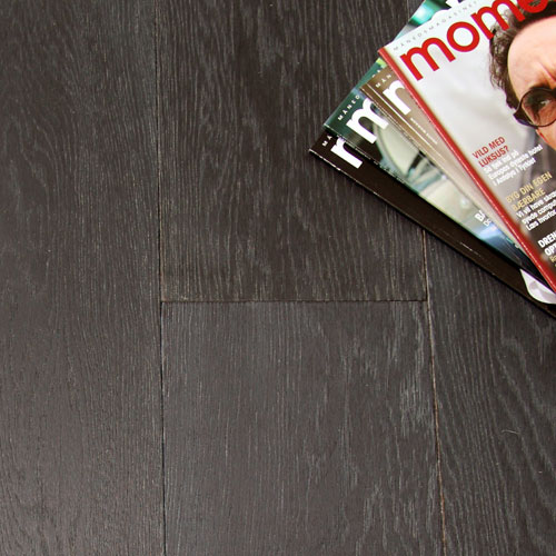 Smoked og hvidvasket plankegulv – naturolieret med Trip Trap olie. Egeplankerne har gennemgået en speciel forarbejdning, så gulvet fremtræder i et unikt look. Lægges uden brug af lim.
