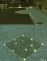 På (FIG.1)og (FIG.2)er lavet en have belysning kombineret med havespot og små markerings punkter i belægningen. Der er her brugt en 100w lysgiver til 8 havespot og 102 små stjerner.