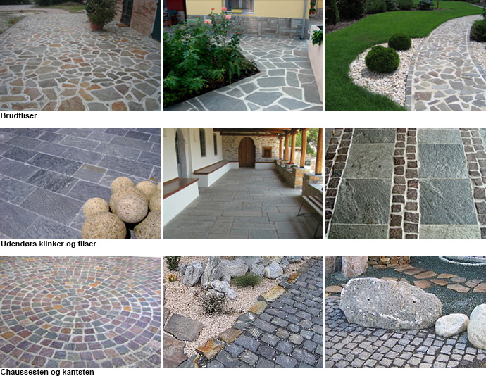 Med Sten-design.dks udvalg af belægningssten i ægte natursten er der uendelige muligheder for at lave sit helt personlige udtryk. Man kan skabe sin helt egen unikke havegang eller havesti med det farvespil natursten giver, hvad enten man vælger brudfliser, mosaik-fliser, antiksten, fliser og udendørsklinker, chaussésten eller brosten. De har et væld af spændende natursten og et stort udvalg i form og farver. Natursten holder evigt og bliver ved med at ændre sig, afhængig af lys og luftfugtighed.