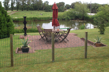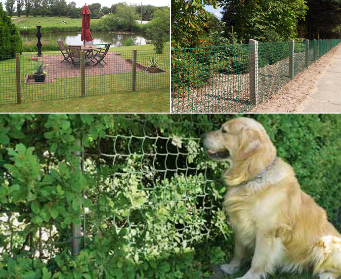 Havehegnet er meget let at opsætte f.eks. på trykimprægnerede træstolper 3” x 3”, hvortil hegnet sømmes med galvaniserede kramper. Eller det kan fastgøres til en plastbelagt jerntråd (ca. 2 mm), som kan anbringes i top og bund og om nødvendigt i midten.