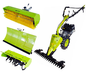 Denne fixe multi havemaskine kan mere end man skulle tro. Multihavemaskinen kan udstyres med flere forskellige ting, således man får flere arbejdsopgave ud af den som eks. fræser, fingerklippe, fejekost og sneskraber