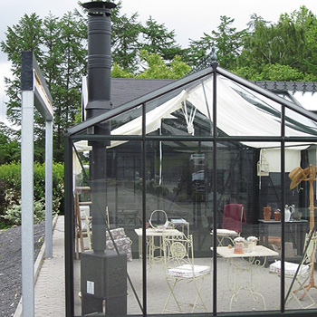 Ved anvendelse af brændeovne skal der helst bruges typer som ikke stråler til siderne, men som ”kun” varmer luften op. Vi tilbyder derfor komplette brændeovnsløsninger, komplet med brændeovn, skorsten samt montage i drivhuset.