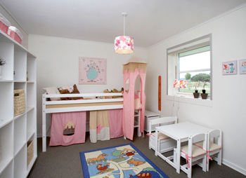 Børn har forskellige behov på forskellige alderstrin. Børneværelserne i HusCompagniet huset er designet til at vokse med børnene. Et børneværelse er typisk ca. 10 m2 – ofte større. Så er der plads til både leg og lektielæsning, pyjamasfester og kærestehygge. F.eks. placeret i egen afdeling med tilhørende badeværelse.