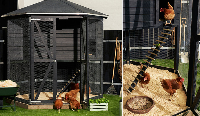 Plus har designet og udviklet et nyt eksklusivt hønsehus, som både er lækkert at se på og nemt at holde.