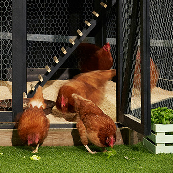 Det kan være hyggeligt at slippe hønsene ud, så de kan gå frit i haven, men hvis man har bede med små nye grønsager og sommerblomster, skal enten hønsene eller planterne hegnes ind. Ellers vil hønsene hurtigt spise de små sprøde spirer. Indhegningen kan helt enkelt laves med en rulle hønsenet og nogle pinde. På samme måde kan man nemt lave en løbegård, der kan flyttes rundt efter behov.