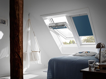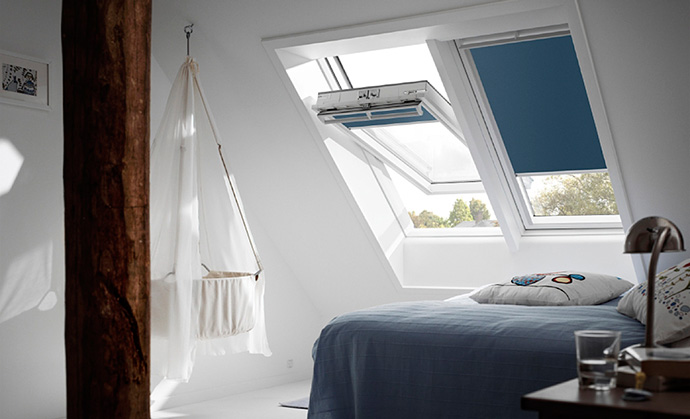 Med VELUX INTEGRA® ovenlysvinduer bliver det nemt at lufte ud i boligen om vinteren. Takket være vinduets indbyggede styresystem kan man tidsindstille vinduet til at lufte ud i boligen på tidspunkter, der generer beboerne mindst muligt. Det kan for eksempel være, når ingen er hjemme, eller når man ikke opholder sig i det pågældende rum. På den måde mærker man ikke den direkte vinterkulde, da eksempelvis soveværelset når at blive opvarmet, inden vi skal sove. Ydermere har systemet en indbygget regnsensor, der automatisk lukker vinduet, hvis det skulle begynde at regne eller sne.