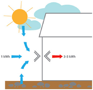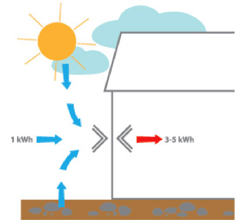 Man kan sige, at den giver solen lidt hjælp med på vejen. Populært sagt fungerer en varmepumpe som et omvendt køleskab.