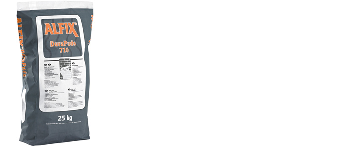 Alfix DuraPuds 710 anvendes til udfyldning af tilbagelagte fuger på op til 10 mm. Pudsen påføres underlaget med stålbræt og overskydende materiale skrabes af.