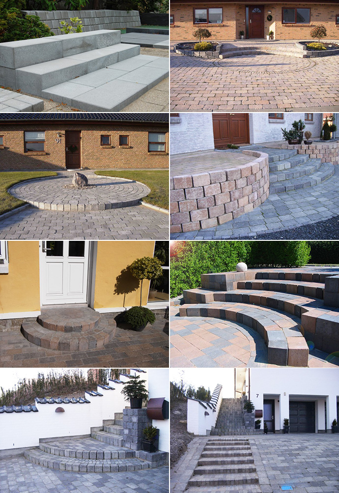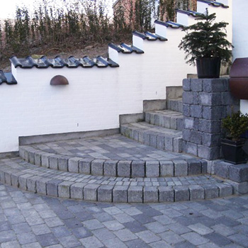 Ved at anvende belægningssten til betontrappen får man rigtigt mange forskellige muligheder for at kombinere farver, former og størrelser, og derfor er belægningssten en populær sten til at bygge betontrapper af.