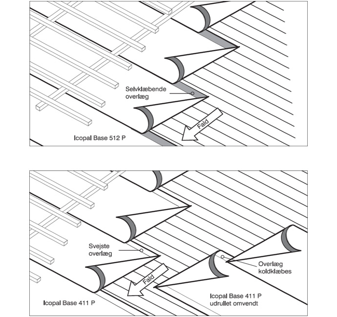 Vælger du en undertagsopbygning med ICOPAL tagpap oplagt på fast underlag af brædder eller krydsfiner, får du den teknisk optimale løsning med hensyn til holdbarhed. Løsningen kan udføres i et eller to lag.