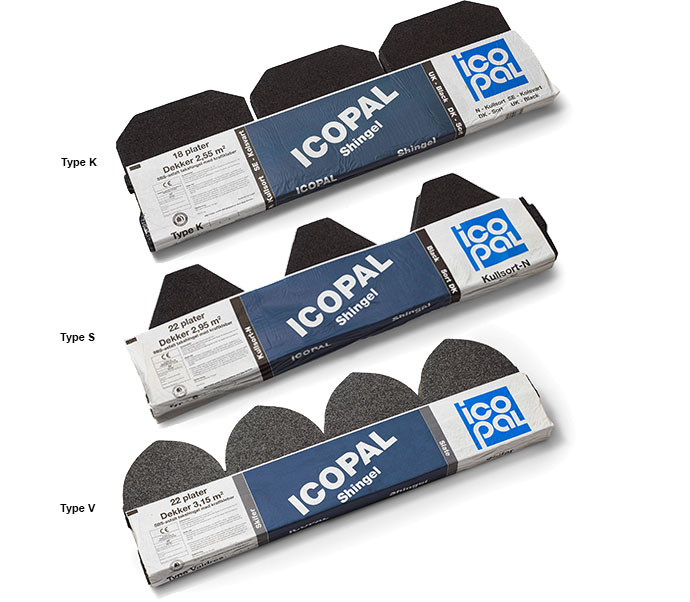 Du kan vælge mellem 7 forskellige farver og 6 forskellige typer. Desuden har Icopal netop introduceret Skurshingles, som er det økonomiske alternativ, der egner sig godt til sekundære bygninger, som f.eks. skure og legehuse.