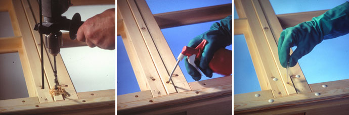 Impel Bor-imprægnering anvendes i konstruktionens mest udsatte dele, hvor træet er fugtigt, eller hvor der er mulighed for senere periodiske opfugtninger.