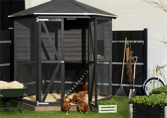 Som det naturlige indslag i dit uderum, kan PLUS byde på et super lækkert sekskantet hønsehus. Med høns i haven har du friske æg til din mad, og til maden har du grønsager og urter fra dine plantekasser. Så kan det næsten ikke blive bedre.