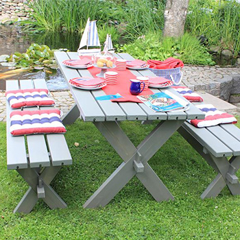 PLUS har rigtig mange typer haveborde og bænkesæt at vælge imellem. Der er også et med hjul, så man nemt kan sætte flere borde sammen til et langt, hvis flere skulle dukke op til fælles spisning eller bare hyggesnak.