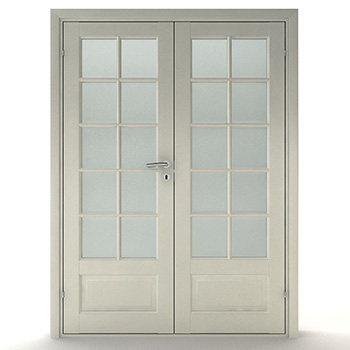 Hvide franske døre og karme fra Dafi door er fremstillet af lamineret hårdtræ og fyldninger i M.D.F, i standardmål. Plade som er primet mod olie gennemsvedning og efterfølgende malet 3 gange i farven ral 9010.