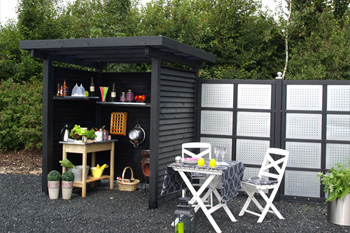 PLUS leverer hegn til alle typer haver og de mange billede forslag giver inspiration til de fleste haver. Se nedenfor og bemærk den smarte løsning hvor et lille overdække giver mulighed for at lille udekøkken, selv når vejret slår om.