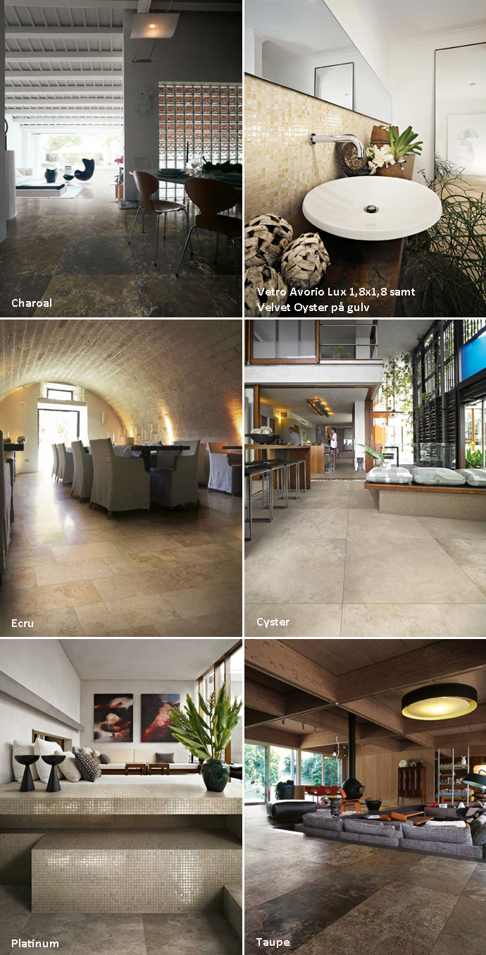 Farverne er bløde og naturlige, og hver farve er omhyggeligt udvalgt og studeret for at gøre et hvert rum til et særligt sted, hvor det er en fornøjelse at opholde sig. Der er sat fokus på elegance og funktionalitet, æstetik og teknologi for at opnå en klinkeserie med en evigt holdbar stil. Klinker fås i et rigt størrelses udvalg: 40×40, 30×60, 60×60, 40×80, 80×80 samt 3 slags mosaik.