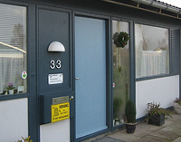 Lette facadepartier i forbindelse med vinduer og dørpartier er meget almindelige i bygninger fra 70’erne. De består af en let trækonstruktion med træ- eller pladebeklædning på begge sider.