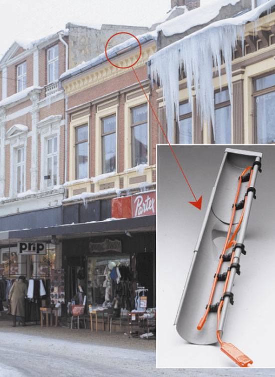 Når vinteren sætter ind, skal der ikke mange dage med sne og frost til, før lange istapper vokser frem langs tage og tagrender. Istapperne er smukke, men farlige, når de peger deres sylespidse ender mod byens fodgængere, cyklister og bilister. Problemet kan imidlertid let løses med en effektiv varmeløsning fra den danske virksomhed DEVI.