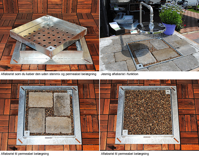 den helt rigtige afløbsrist integreret i belægningen.
