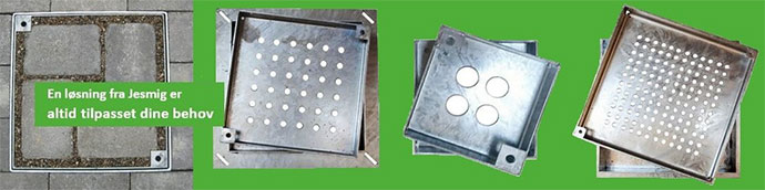 Jesmig Brønddæksler® fremstilles som firkantede brønddæksler til flisebelægning.