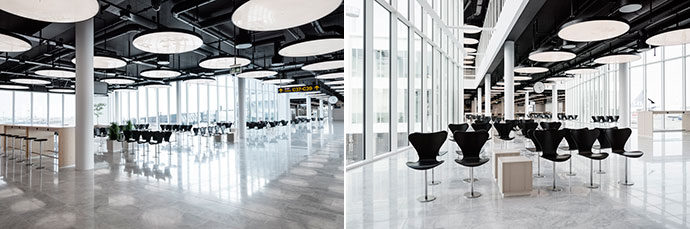 Udvidelsen af Finger C i Københavns Lufthavn Kastrup er opført på få søjler med meget store spænd for at optimere serviceringen af flyene. Indenfor er der skabt en imødekommende atmosfære med bl.a. carrara-marmor på gulvene. Her har schmidt hammer lassen architects trukket på producenten ARDEX for at sikre en gulvopbygning, der tager højde for bygningernes store bevægelser – og samtidig lader marmorgulvene bevare deres hvide farve.