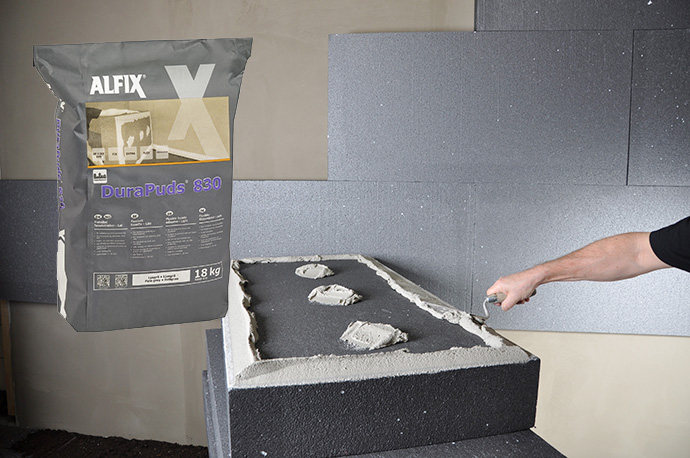 Fremspring eller lunker skal udlignes. Udfyldning af lunker og ujævnheder kan udføres med Alfix DuraPuds 830 isoleringsklæber op til 30 mm. Opretning i heldækkende lag dog max. 10 mm.