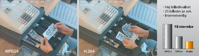Med Spyman Securitys overvågningssystemer er baseret på den nyeste teknologi inden for videokompression – H.264. Denne kompakte kompression, betyder at alle optagelser er i real time (25 fps), så man slipper for hakkende, uskarpe billeder. H.264 gør det også muligt af følge overvågningen vis internettet.