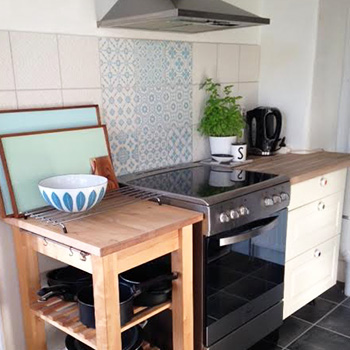 Gårdagens store projekt var at få lavet en smuk flisevæg af italienske hånddekorerede keramikfliser , hvor hver flise har sit unikke mønster og farve. Jeg har valgt at mikse hvid på hvid med turkis på hvid, så det ikke bliver for rodet og turkist, da køkkenet er smalt og let kommer til at se rodet ud. Selvom Hvid på hvid er en virkelig smuk variant, så vurderede jeg at det alligevel ville være lidt for tamt, når den nu fandtes i så mange smukke smukke farver!